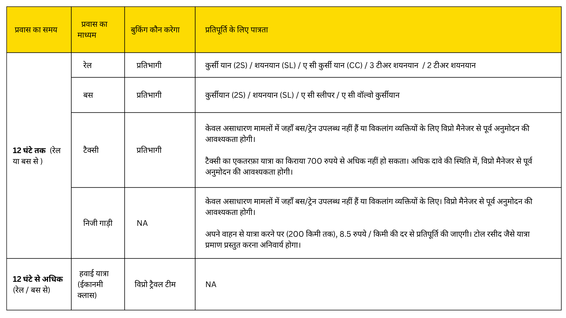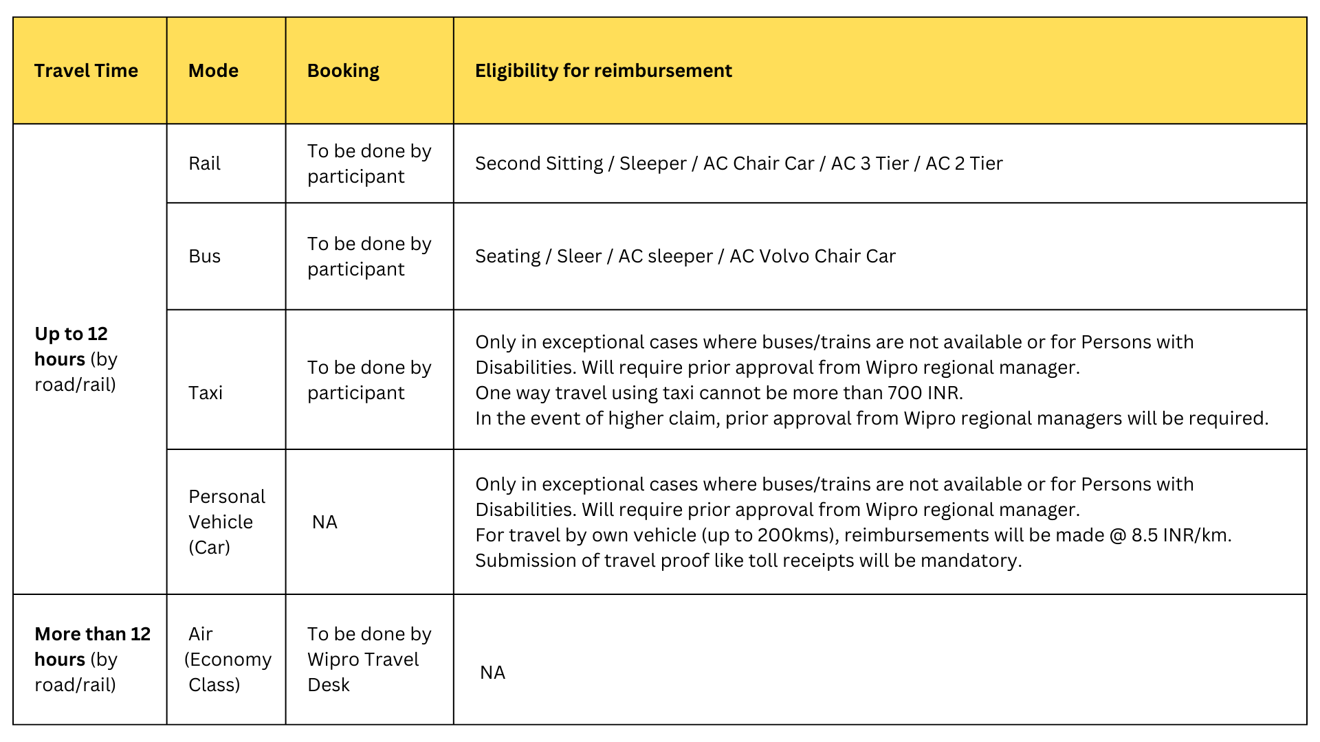 3) विप्रो द्वारा केवल अंतर-शहर/अंतर-राज्यीय यात्रा की प्रतिपूर्ति की जाएगी। स्थानीय यात्रा व्यय की प्रतिपूर्ति नहीं की जाएगी।