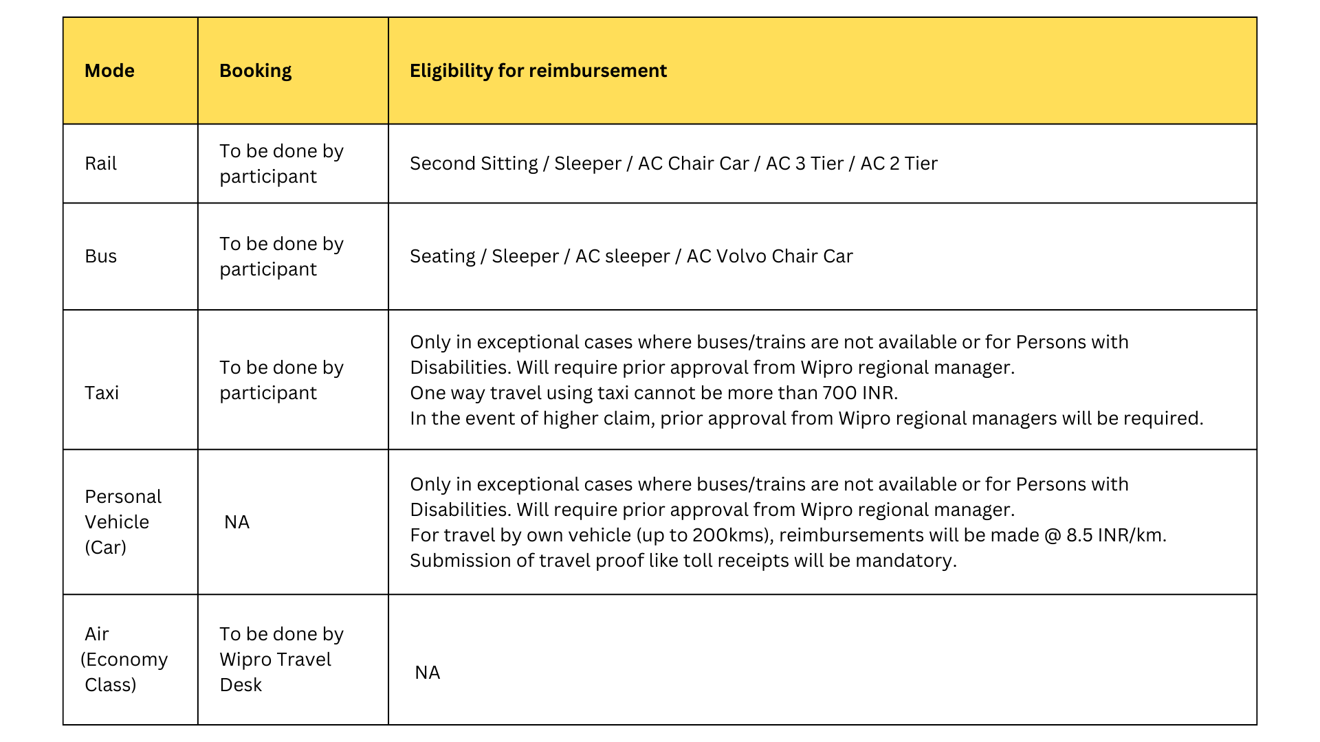3) Only intercity/inter-state travel will be reimbursed by Wipro. Local travel expenses will not be reimbursed.